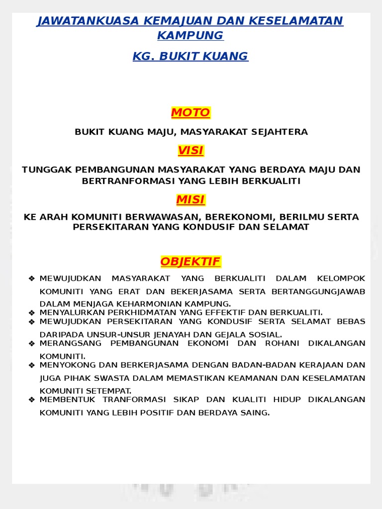 Jawatankuasa Kemajuan Dan Keselamatan Kampung from rtpsgular.pjk.com.my Beberapa pembaharuan dilaksanakan iaitu yang pertama daripada segi prosedur pelantikan anggota. Aug 11, 2014 · jawatankuasa kemajuan dan keselamatan kampung. May 25, 2018 · "jawatankuasa kemajuan dan keselamatan kampung" atau singkatan nya jkkk. Jawatankuasa kemajuan dan keselamatan kampung (jkkk) kampung pahu, w.d.t 91 89257 tamparuli sabah. More images for jawatankuasa kemajuan dan keselamatan kampung » Kita juga sering tersilap mengandaikan bidang kuasa jkkk ini. Nov 05, 2017 · jawatankuasa kemajuan dan keselamatan kampung raban, lenggong. Dewan serbaguna kampung pahu baru masa :